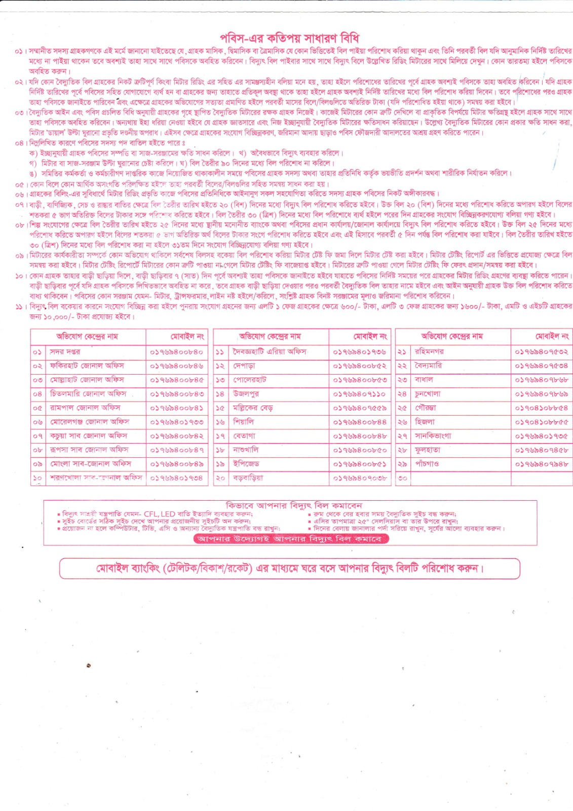 পবিস এর কতিপয় সাধারণ বিধি: